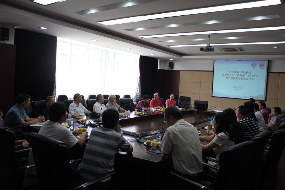 在第32个教师节前夕,法学院举行新老教师座谈会暨 “传帮带”系列活动。尹东年教授、於世成教授、姚洪秀教授、沈禹钧教授、沈秋明教授等作为老教授代表出席,法学院相关负责人及部分教师参加了座谈。