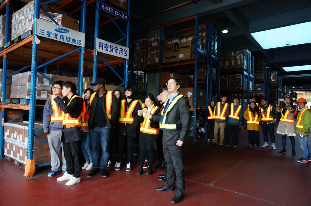 随后,同学们参观了空运仓库,工作人员介绍了空运进口货物的实际操作流程,并带领大家参观了其先进的仓库信息管理系统及设施。