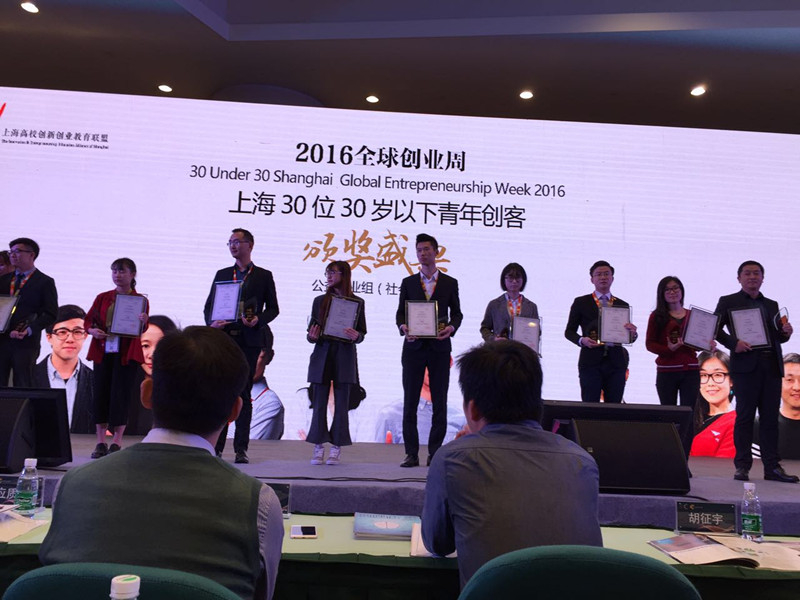 2016年全球创业周“上海30位30岁以下青年创客”评选颁奖暨《2016众创空间发展报告》发布仪式于11月14日在上海科技馆举行。本次评选在公益创业类、科技创新类、文创与服务类3个大类中,遴选出“上海30位30岁以下青年创客”。我校经济管理学院国际经济与贸易专业2013级学生张以颖作为“何嗟科技”创始人,入选公益创业类2016年全球创业周“上海30位30岁以下青年创客”。