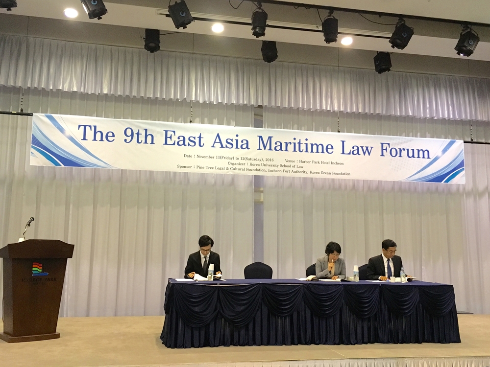11月11日至12日,第九届东亚海商法论坛(The 9th East Asia Maritime Law Forum)在韩国仁川举行。60余位来自中国大陆与香港地区、日本、韩国、英国、新加坡的海商法学者、律师、法官以及航运企业与保险公司的实务人员参加会议。上海海事大学海商法研究中心主任、法学院胡正良教授等应邀出席了会议,并作了题为“Developments of Maritime Law in China in 2015-2016”的主题报告。