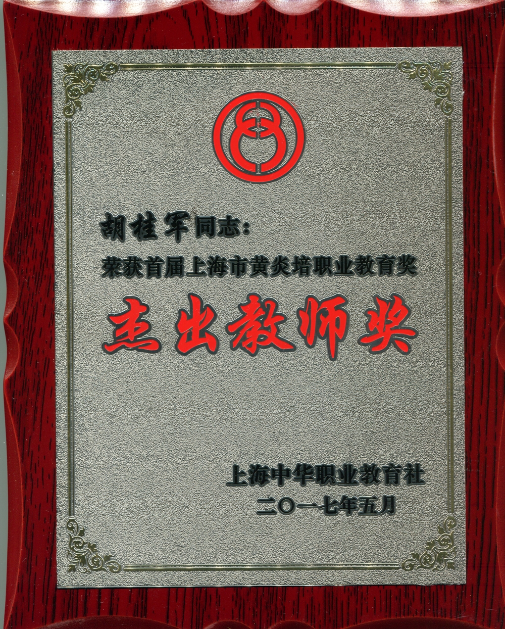 在日前落幕的纪念中华职业教育社成立100周年大会暨“上海市黄炎培职业教育奖”颁奖仪式上,我校港湾校区胡桂军老师荣获“上海市黄炎培职业教育奖之杰出教师奖”。