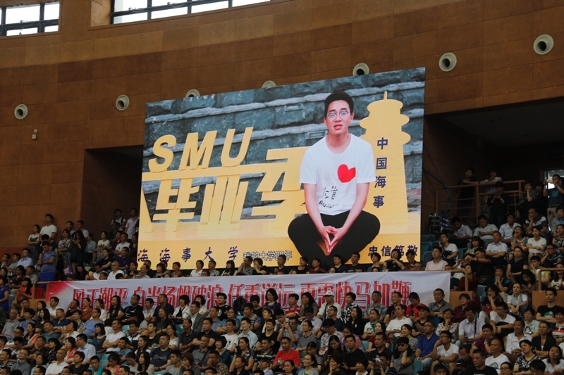今天参加毕业典礼的足球冠军球队中就有姚子阳、别克、程祚、周飞、萨比尔江、萨米等同学。在此,我要特别感谢在三连冠决赛中都有进球的“海事C罗”姚子阳同学!感谢他无私地把“海大”荣誉放在第一位!听说比赛完回到学校,姚子阳同学修改毕业论文到凌晨。不知他是否赶上了熄灯。恭喜你!姚子阳同学!恭喜你顺利毕业!恭喜你即将赴中山大学继续深造。(姚子阳同学,你能站一下吗?冠军队员们,你们能站一下吗?)恭喜你们顺利毕业!感谢你们!