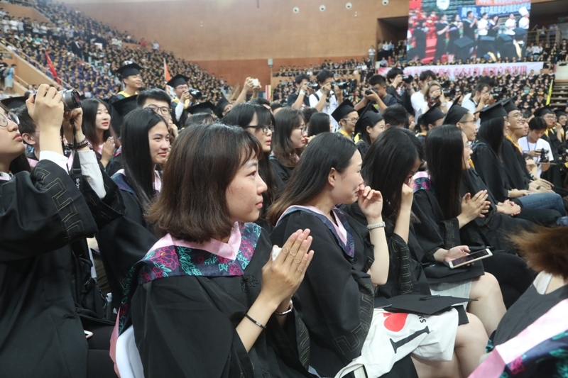 同学们,“没有一本一劳永逸的书”,更没有一张可以直接变现的文凭。今天同学们头上的学士帽、硕士帽和博士帽,轻轻一摇晃可能就会掉下来。所以,既不要轻视它,也不要太依赖它;要善于发现新问题,善于找到新目标,善于寻找新动力,善于打开新格局,就要善于依靠不断的学习!
