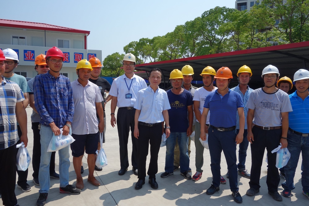 7月27日上午,副校长严伟带领基建处相关负责人一同来到新建研究生公寓项目施工现场,看望和慰问了一线的施工单位、监理单位、代建单位等工作人员,并为他们送上防暑降温物品。