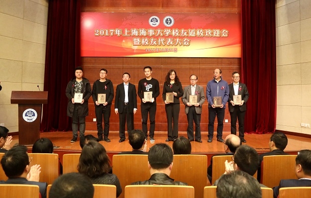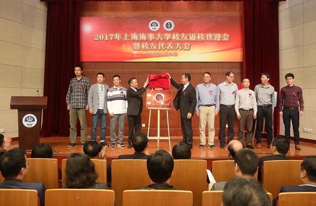 严伟副校长为《上海海事大学校友园地》优秀作品奖获得者,1977级外语专业校友张国平(作品《1977那一年——纪念高校恢复高考40年》)、1979级水运管理系财会专业校友傅俊元(作品《传承:父女海大情》)、1982级水运管理系财会专业校友石兴(作品《圣地延安情·诗词两首》)、1984级国际航运专业校友刘艳华(作品《青春飘过三十年》)、1989级水经财会系校友陈海波(作品《母校的味道》)颁奖;并分别与闻健明会长、许竞学校友、夏国和校友共同为校友高尔夫俱乐部、校友帆船俱乐部和校友篮球俱乐部揭牌。
