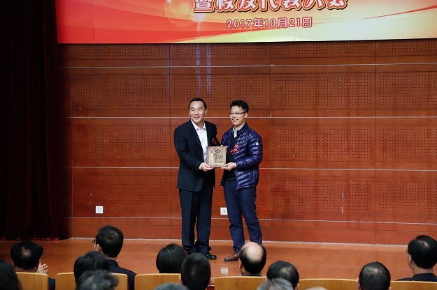 施欣副校长向2017年“我爱母校”年度捐赠者,1978级水运会计专业孙月英、水运经济专业吴振华、外国语学院教授王大伟、1986级法学专业赵淑洲、1985级海商法专业胡斌、1989级水运会计专业陈海波、2002级行政管理专业齐银良等校友颁发捐赠鸣谢牌,向捐赠时光长椅的集体:2013级交通管理专业、交通运输专业、信息管理与信息系统专业、1984级远洋运输专业、1963级水运管理专业、首届舢板远航队、上海海事大学香港校友会,以及捐赠时光长椅的个人:1987级法律系罗大伦、吕玉强、1990级法学研究生季文元、2007级交通运输专业王升、2011级英译专业潘琛等校友颁发捐赠鸣谢牌。