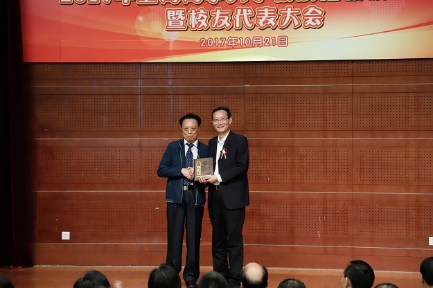 值年集体返校的轮机75级和国航93级校友向母校赠送了纪念品,表达了对母校、对恩师的无限感激之情,祝愿学校蓬勃发展。