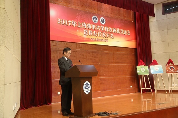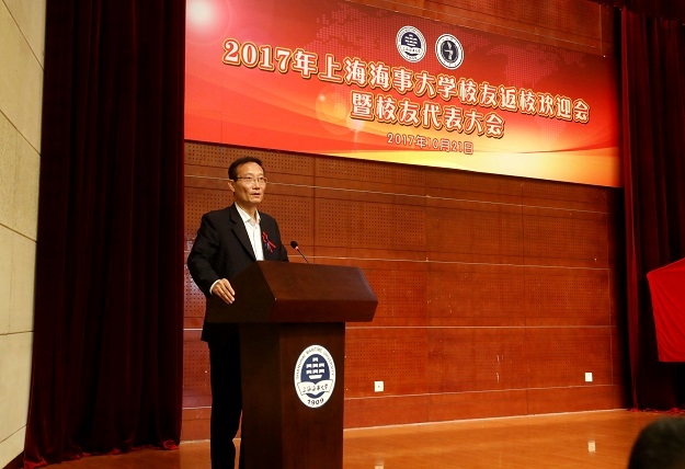 黄有方校长发表热情洋溢的讲话,代表全校师生员工,热烈欢迎校友们“回家”,并向长期关心、支持学校发展的各级领导、各位校友和各界人士表示感谢。他向校友们介绍了学校近年来取得的成就:在航运领域,学校和中国航海学会在北京共同发布了《南海航行状况研究报告》,引起了国内外的广泛关注;国际海事组织亚洲海事技术合作中心落户我校;在物流领域,学校做了大量卓有成效的工作,主持了包括雄安新区在内的许多重要城市的物流战略规划项目。此外,学校在教学、科研、研究生教育、师资队伍建设、学生工作、后勤保障、校友工作、现代大学制度建设等方面取得了令人瞩目的成就。黄有方表示,学校的发展及其辉煌的未来与校友们密切相关,全校教工一定会携手奋进,不负广大校友的期望,在上海国际航运中心建设、“一带一路”建设,自由贸易试验区建设、上海科创中心建设中发挥更大的作用,努力把学校建成具有全球影响力的高水平海事大学。