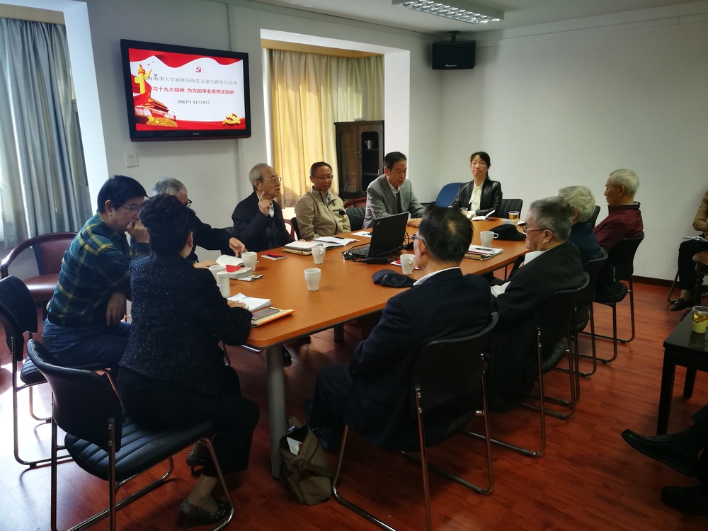 11月9日,上海海事大学退休局级党支部举行“学习十九大精神,为党的事业发挥正能量”主题党日,专题学习党的十九大精神,会议由支部书记王恩田主持。校党委组织部及部分学院、部门党委(总支)负责人到场观摩。