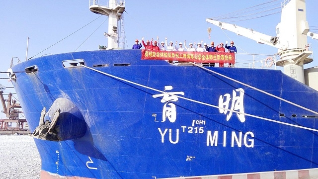 上海海事大学作为国家海洋强国建设和上海国际航运中心建设的“人才摇篮”,航海实习是学校实践教学的一大特色,已有几十年的航海实习传统。作为目前世界上吨位最大、设备最先进的远洋实习船,“育明”轮自2012年12月12日交付使用以来,在5年的“服役”中,已安全顺利完成26批次学生、共3089人次的载货航行教学实习任务,成为国家培养高素质航海类人才的“海上移动校园”。大年三十,“育明”轮将在长江口锚地抛锚,预计2月17号停靠南通。