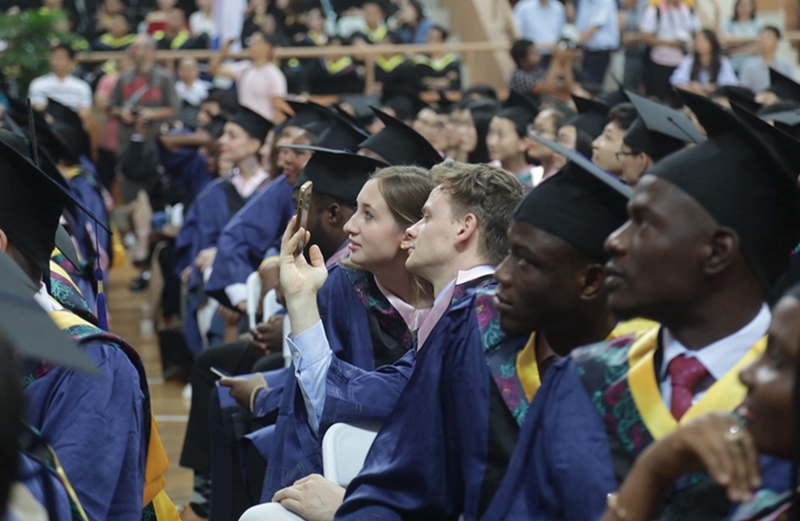 同学们,你们毕业后,学校变成了母校,但母校不会是你们的前任123,而将永远会是你们精神生活中的现任。上海海事大学一定会发展得越来越好,上海海事大学永远是你们坚强后盾,上海海事大学永远是你们的精神家园。