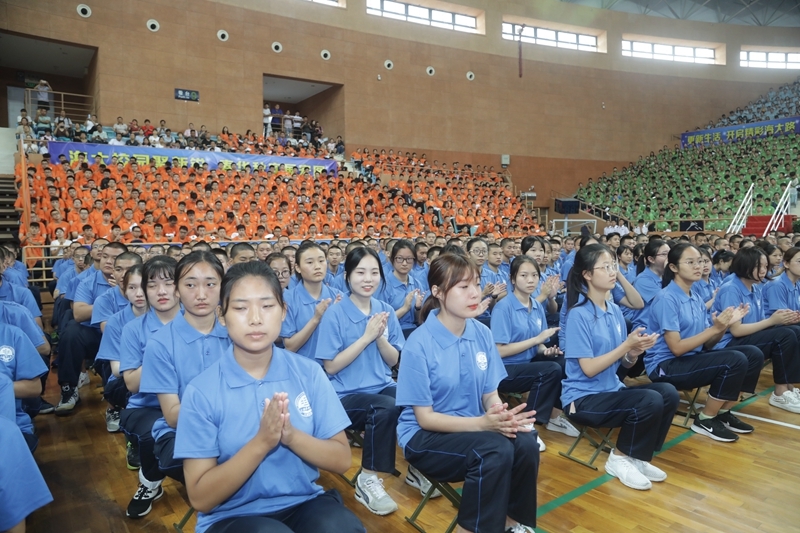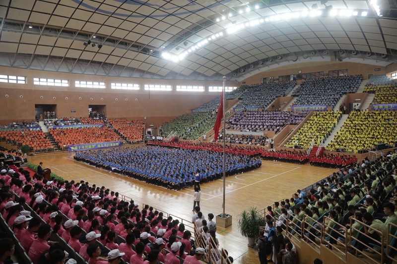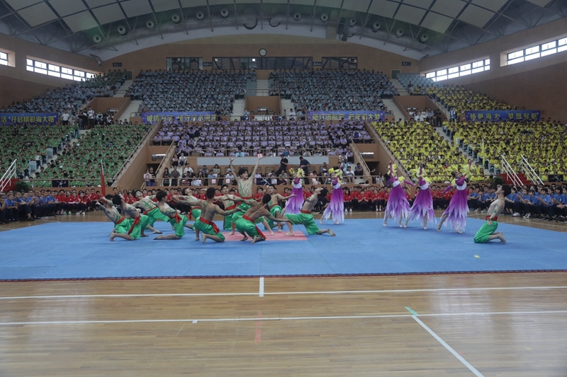 刚才,大家看到了你们的学长、学姐们带来了精彩的文艺、武术等表演,但这只是学校大量学生社团活动的一个缩影,每年我们还有许许多多的学生活跃在各项实践活动当中,获得成长。前不久,我校郭梦娇同学在第18届亚运会武术女子剑术枪术个人全能比赛中夺得金牌,她正是用自己的实践见证着梦想与成长。