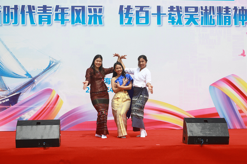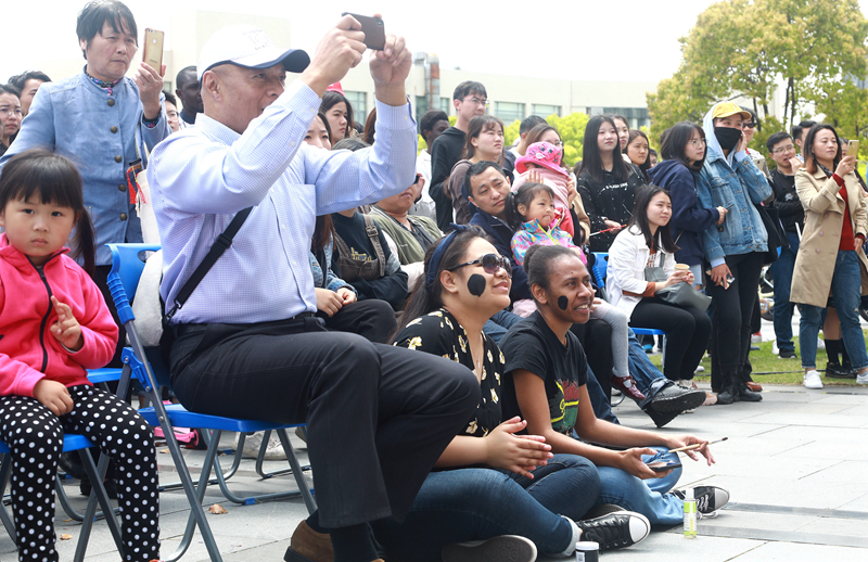 活动中,穿着名国民族服饰的留学生们登台展示了才艺。来自加纳、泰国、缅甸、斐济、越南、土库曼斯坦、喀麦隆等国的留学生,表演了各具民族特色的传统舞蹈;来自泰国和埃及的留学生表演了富有中国特色的太极和咏春拳,引来现场观众的声声喝彩;来自科摩罗、蒙古留学生的歌曲和马头琴演奏,美妙的旋律扣人心弦。此外,来自上海海洋大学、上海电机学院、上海电力大学的留学生们也前来捧场,同台联欢。留学生们用满满的热情,向摊位前的参观者介绍他们祖国的风俗,分享家乡的美食。各国文化在交流中碰撞,上演了一场精彩的国际盛宴。