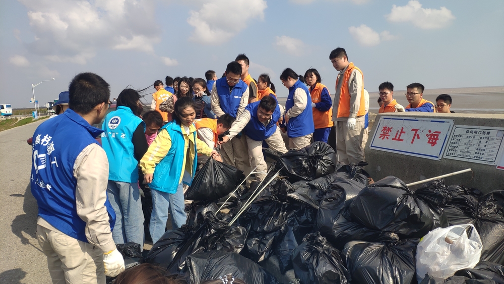 扎根泥地“守初心”,躬身实践“担使命”。本次清滩活动共分为四个清滩点位,分别是南汇嘴观海公园入海口点位、南港大道与堤顶路交叉口点位、滴水湖水闸点位以及东海大桥东侧入海口点位。当天中午12:30,全体党员分别到达指定点位,在临海“清”年平方志愿者的引导下领取清滩工具并积极投入清滩工作。清滩过程中,各单位党员自成小组,分工配合,有的负责垃圾拾捡,有的负责垃圾装袋,有的负责垃圾分类。对于埋藏较深的垃圾,部分党支部多名党员你拖我拽进行清理;对于泥地的垃圾,多名党员排成一列你传我递;对于沾满污泥的垃圾,所有党员主动捡拾,不怕脏不怕累,过程中充满了欢声笑语,大家都沉浸在清滩的喜悦中,每清理出一袋垃圾,小组成员都会增添一分收获感和幸福感。整个活动共清出海滩垃圾1952.4公斤,清理后的海滩洁净美丽,清滩活动得到观海游客的充分肯定和赞誉。