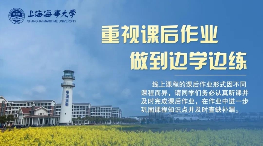 2. 课程成绩由平时成绩与卷面成绩组成,学生线上学习情况(包括学生在线签到、观看课件视频等学习资料、参与在线讨论、上传作业等情况)计入平时成绩。平时成绩比例按原办法执行,具体参照《上海海事大学课程教学规范》。