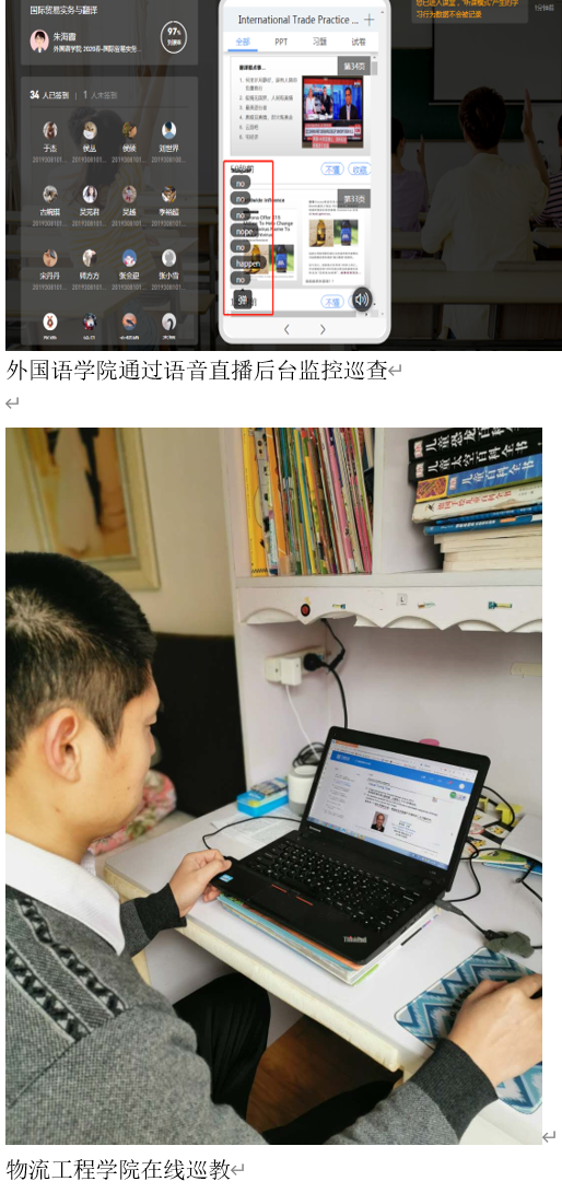 为上好特殊时期的新学期第一课,开课前,2月26日~2月28日,全校共计5318门次本科生课程参加在线教学测试,参与测试学生达35905人次,收集测试问卷15063份,对于测试反馈问题,学校技术部门和各学院积极协调处理,力求将新冠肺炎疫情对教学的影响降到最低,保障师生获得良好的学习体验。为了实现“学习不延期、标准不降低”的目标,任课教师精心准备授课内容,建立相应的课程QQ群或微信群,多渠道向同学们发布课程导学,告知同学们线上课程的具体开课方式。