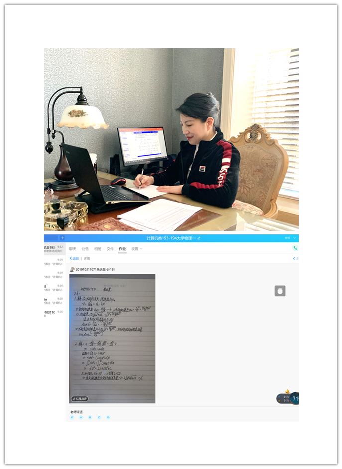文理学院物理教研室的阎明老师虽然是一名老教师,但她使用各种新媒体手段,在提高在线教学效果方面成了年轻人的导师。阎明整理了物理学习中学生最难掌握的公式和重点、难点,使学生能较好的把握课程的主要内容。为了让学生充分了解解题方法和步骤,同时由于讲解时需要用到大量的特殊符号,阎明老师就利用手机拍摄解题过程,边写边解释每个步骤。这个快捷便利的方法,有效解决了学生在作业中遇到的问题,对基本概念也有了更好地掌握。