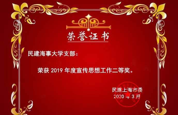 3月25日下午,民建市委组织召开了线上2020年宣传思想工作会议。会上表彰了宣传思想先进单位和个人。民建上海海事大学支部荣获2019年度宣传思想工作先进组织二等奖,支部宣传通讯员鹿畅荣获2019年度宣传思想工作先进个人。 民建上海海事大学支部已经连续四年获得宣传思想工作方面的奖项,虽然成立时间晚、会员比较少,却一贯重视抓好组织的各项工作,每年支部的各项工作也都受到民建上海市委的充分肯定。