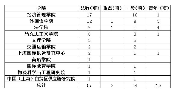日前,上海海事大学完成2020年度国家社科基金项目集中申报工作,全校11个部门共申请57项国家社科基金项目。其中,3项重点项目,44项一般项目,10项青年科学基金项目。各部门申报情况如下: