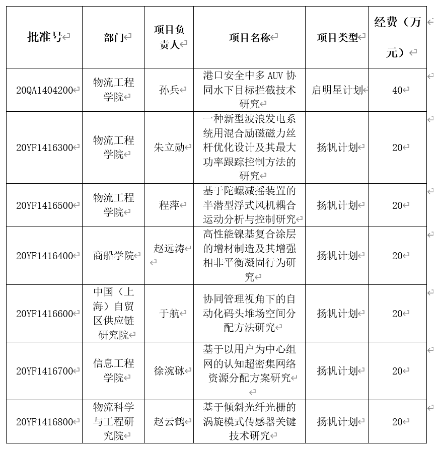 近日, 上海海事大学7项省部级人才计划项目获市科委立项资助,包括 1项青年科技启明星计划(A类)项目和6项青年科技英才扬帆计划项目。市科委人才计划项目竞争激烈,其中,启明星计划项目是学校时隔7年后,连续第二年获得立项。具体立项情况见下表: