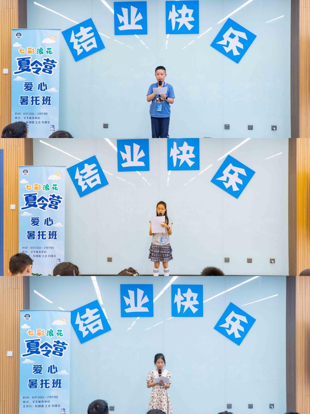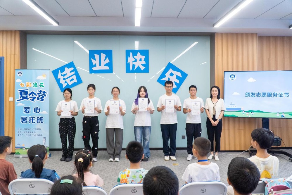 校工会常务副主席唐永忠对本次活动进行总结,充分肯定了暑托班取得的成效。现场还颁发了学员结业证书和志愿者服务证书。