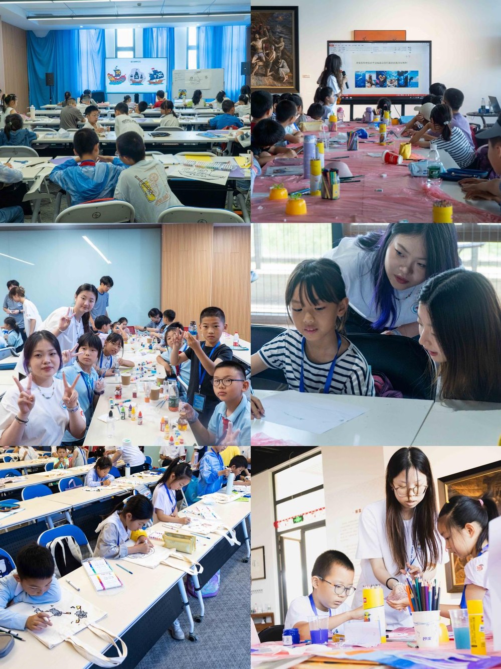 本次课程设置独具匠心,将航海科普与艺术教育完美融合。在徐悲鸿艺术学院的艺术创作课程中,小朋友体验了包括中国传统海洋元素纹样绘制、漂流瓶制作、帆布包手绘、毛毡板制作、陶艺制作等丰富多彩的项目;在航海文化探索方面,小朋友们通过参观体验校史馆、航海博物馆、水上训练中心等,深入了解学校发展历程和航海历史;科技创新环节安排了智慧航运通信工程、海鹰青创实验室参观,船模制作体验等活动,激发科学兴趣;此外还设置了光影摄影、航海英语等特色课程,全方位提升孩子们的综合素质。