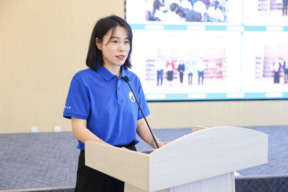 班主任门秀艳介绍了第一期研修班的工作成效,第一期研修班学员代表商船学院学生王邈谌、第二期研修班代表海洋科学与工程学院学生王智霖分别发言。