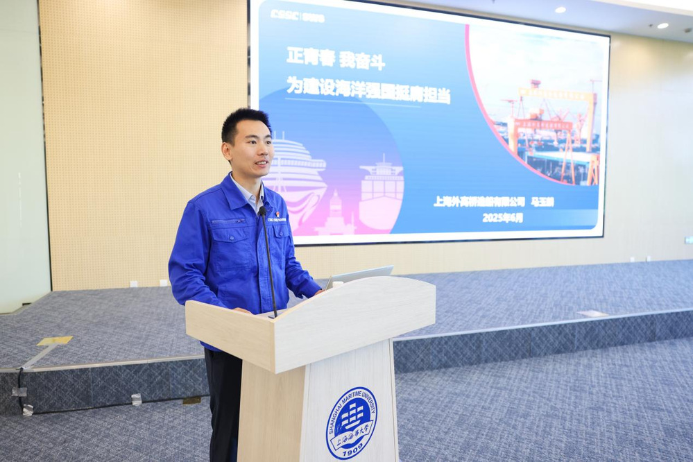 本次研修班邀请了第28届中国青年五四奖章集体获得者--大型游轮建造管理团队、轮机工程专业2006级校友马玉麟出席开班仪式,并为学员讲授开班第一课。