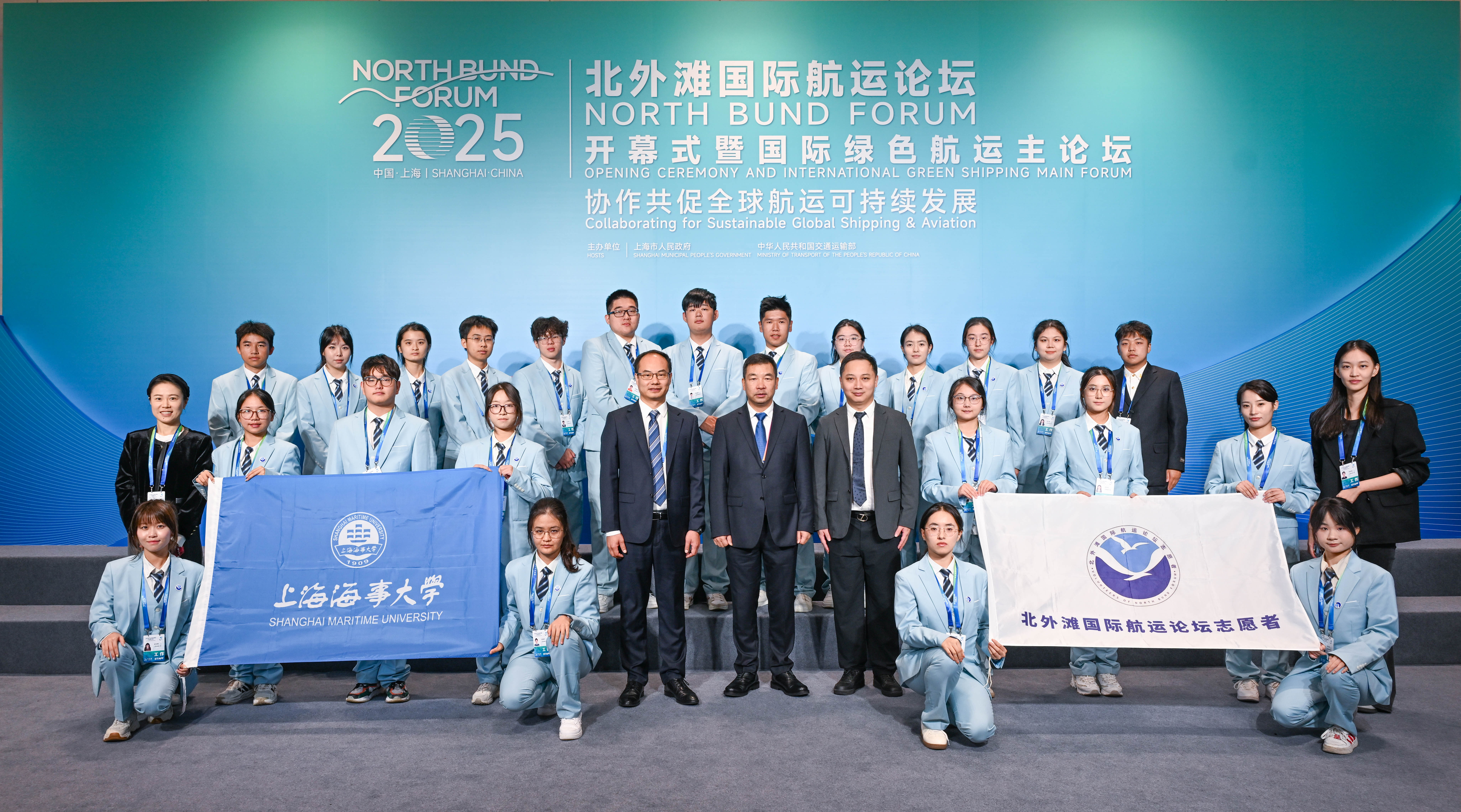 10月19日至21日,由上海市人民政府与交通运输部共同主办的2025北外滩国际航运论坛在上海北外滩世界会客厅成功举办。学校选拔的23名“小海鸥”志愿者积极参与论坛服务工作,承担了现场服务、会务保障与后勤机动三类岗位任务。