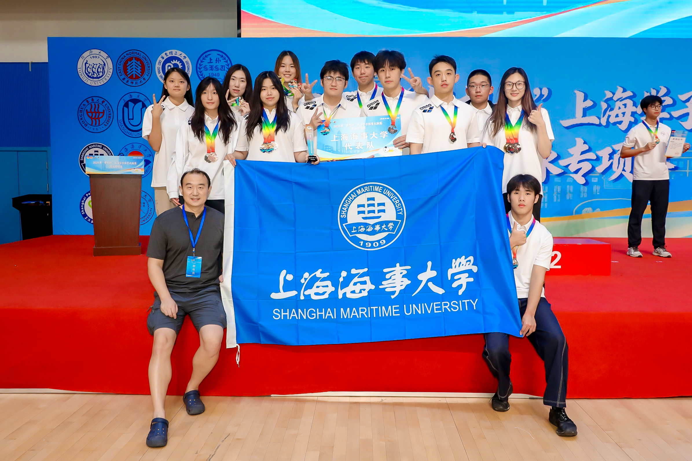 同一天,在2025“梦想杯”上海学子体育大联赛游泳专项赛中,上海海事大学游泳队凭借出色发挥,以2金2银1铜的优异成绩,勇夺团体总分第一名,并荣获赛会“优秀组织奖”。