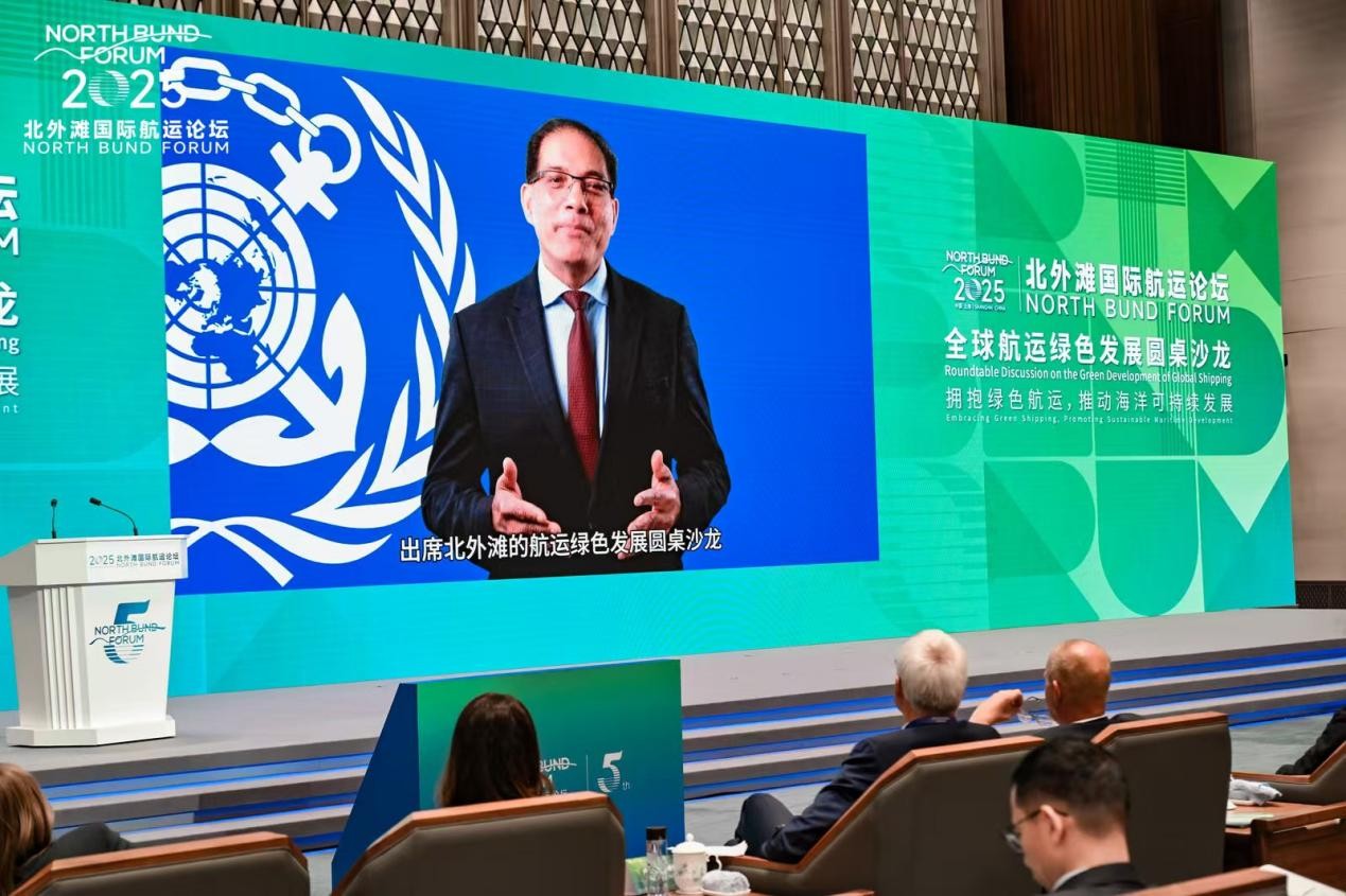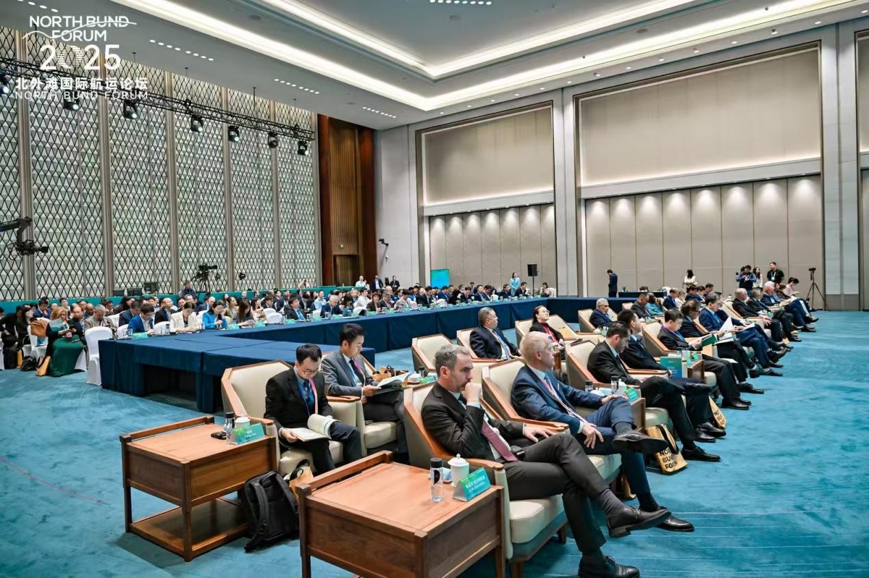 10月19日至21日,由交通运输部、上海市人民政府共同主办的2025北外滩国际航运论坛在上海世界会客厅举行。今年论坛主题为“协作共促全球航运可持续发展”,设开幕式暨国际绿色航运主论坛、2个主题论坛、4个分论坛和10余个特色活动。其中,“全球航运绿色发展圆桌沙龙”由上海海事大学、亚洲海事技术合作中心(MTCC Asia)、中国港口协会联合承办。本次沙龙以 “拥抱绿色航运,推动海洋可持续发展”为主题,设立“国际海事组织航运减排中期措施”“替代燃料和航运减排新技术”“航运绿色人才”等重要绿色航运发展议题,吸引了来自多个国家和地区政府部门、国际组织、航运企业及学术机构的200余位代表参会,圆桌沙龙由副校长殷明主持。