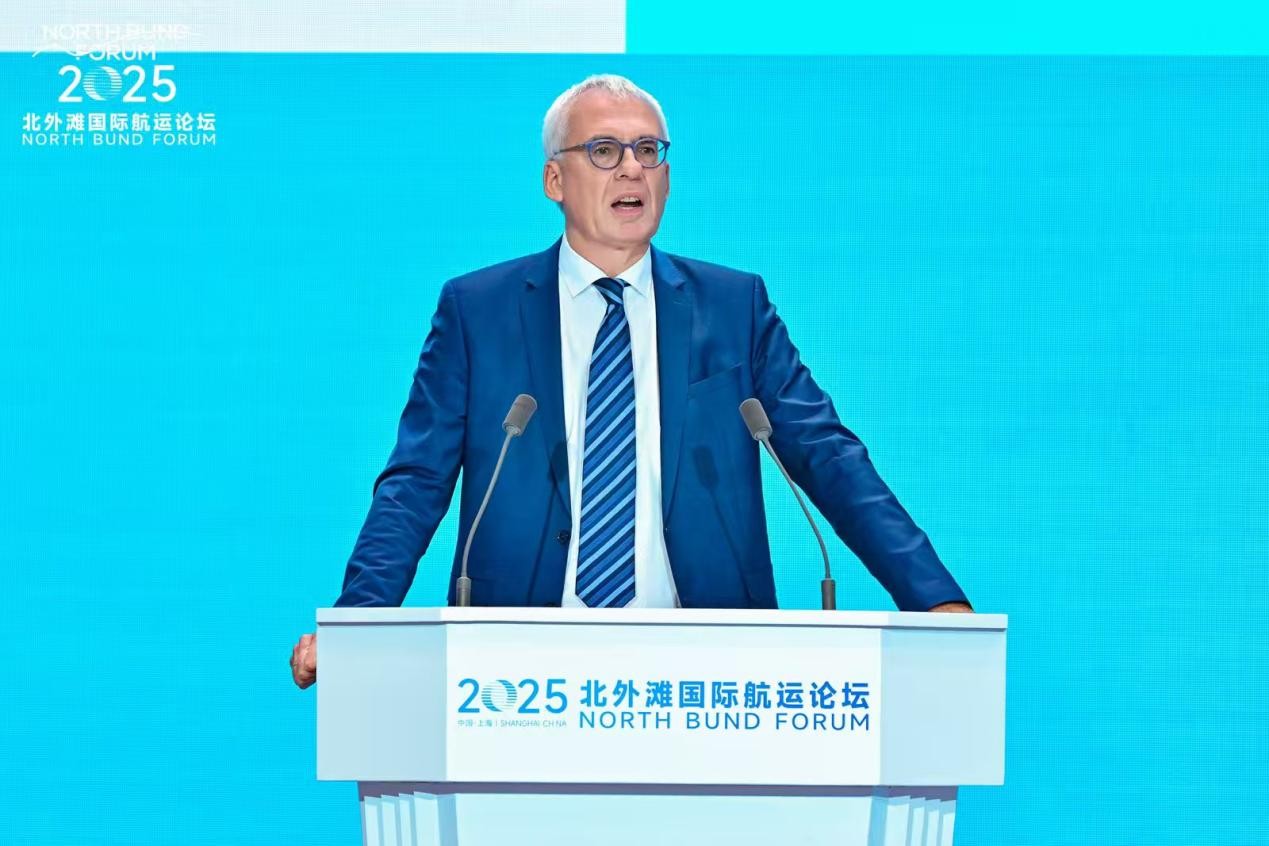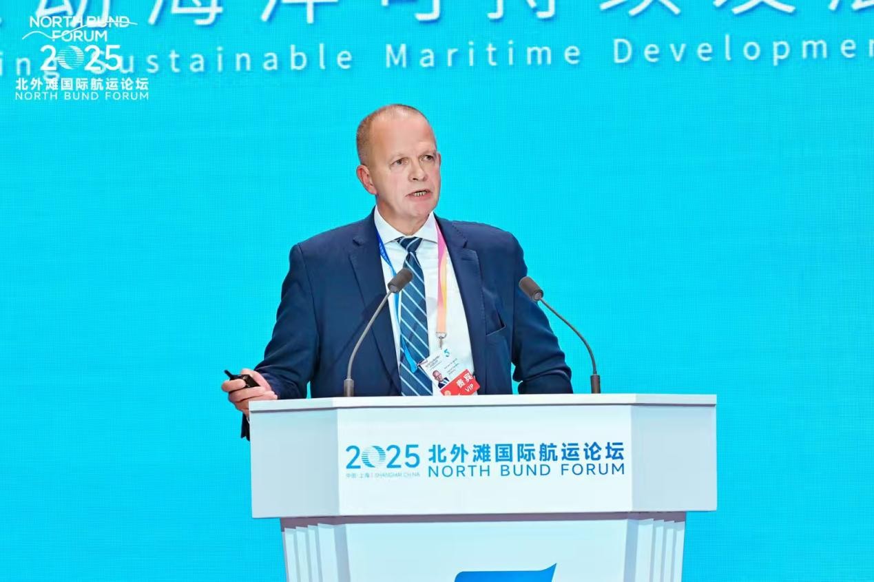 在专家发言环节,交通运输部海事局副局长范永辉深入阐述了中国航运业的绿色转型战略,强调中国正通过强化统筹、完善保障及深化国际合作,系统性推进航运脱碳进程,并呼吁全球航运界凝聚共识,构建开放共赢的绿色航运生态。 欧盟海事顾问、原丹麦海事局局长安德烈斯・诺塞斯(Andreas Nordseth)强调需以全局视角推动航运各领域协同,共同推动绿色航运发展。比利时安特卫普-布鲁日港全球网络副总裁卢克・阿诺特斯(Luc Arnouts)分享了港口绿色能源应用与技术实践,呼吁全球港口加强合作,共同助力航运领域去碳化。
