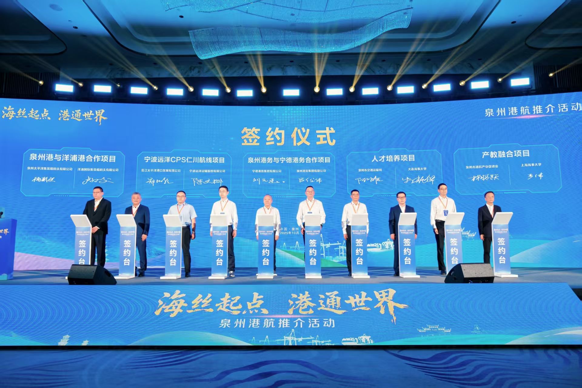 10月23日,由福建省交通运输厅、泉州市人民政府指导,泉州市交通运输局等单位主办的“海丝起点,港通世界”泉州港航推介活动在泉州市举行。福建省交通运输厅、泉州市政府及港航相关企业、金融机构等代表出席。