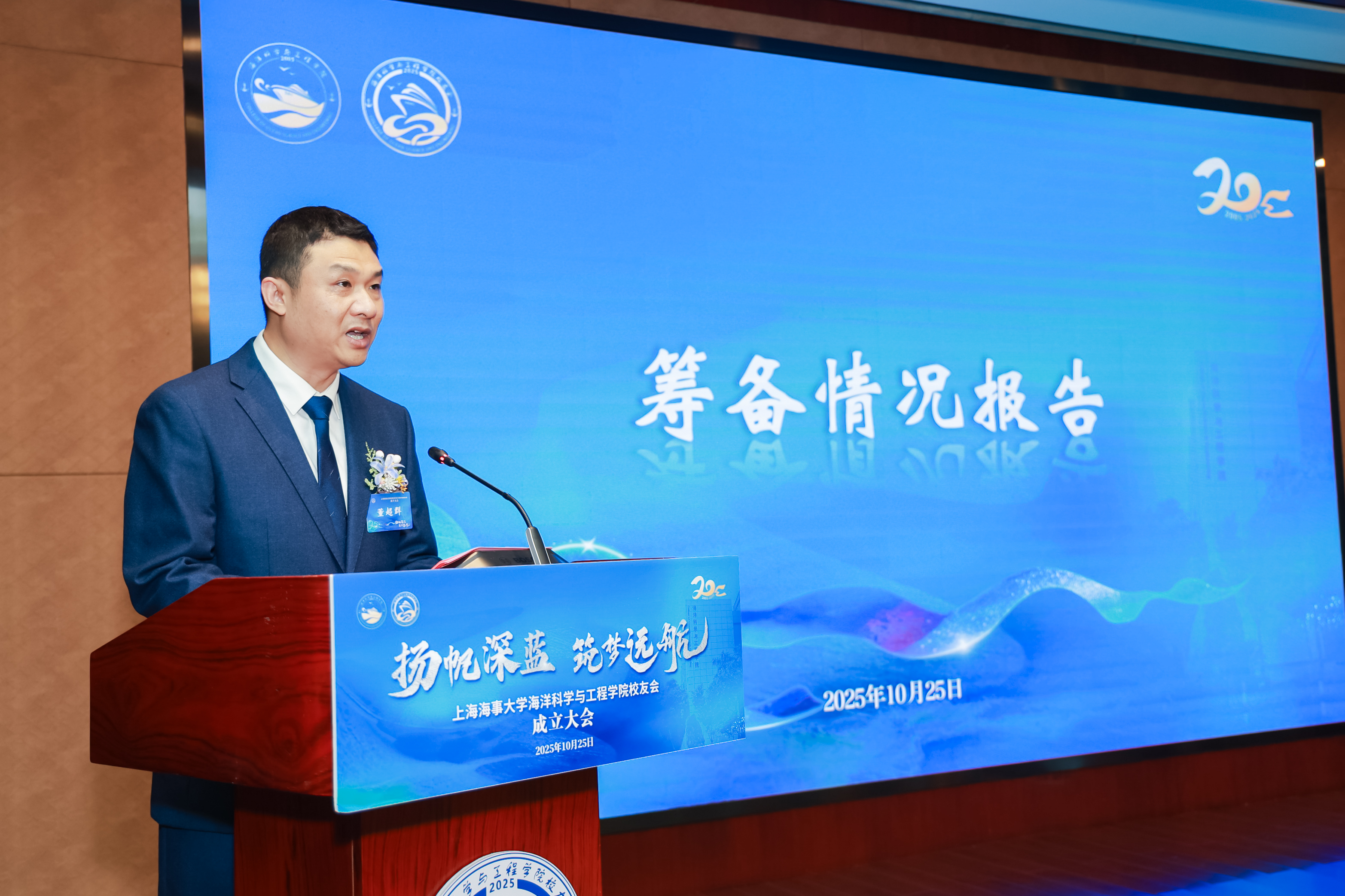 海洋科学与工程学院党委副书记董超群作校友会筹备工作报告,详细介绍了从酝酿、筹备到成立的整个过程。