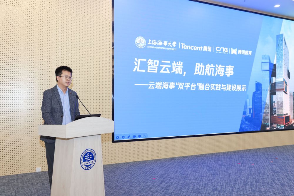 石梅在致辞中高度评价了学校数字化转型的前瞻性布局。她表示,腾讯秉承“用户为本、科技向善”的使命,将云技术与AI融入海洋特色学科,与学校在海事教育教学场景下携手共创。在前期联合发布全国首个“海洋与法治大模型”一期“海商法大模型”的基础上,此次双方再次深度共创,推出“双平台”,共同探索AI技术与海事教育深度融合的创新路径。她期待双方深化合作,共同助力打造“人工智能+海事教育”的中国标杆,为全球输出海事教育的“中国方案”。