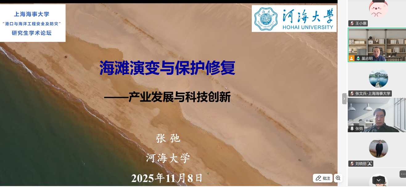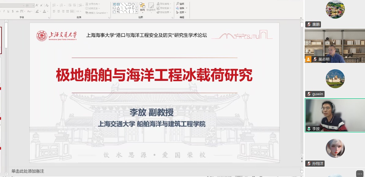 论坛举行了5个学术分论坛,涵盖港口与海洋岩土工程、港口与海洋工程结构安全及耐久性、水资源调控与水环境污染控制、港口与海洋水动力工程理论及应用、海洋安全与防灾减灾技术等主题。与会研究生通过线上方式参与学术交流。