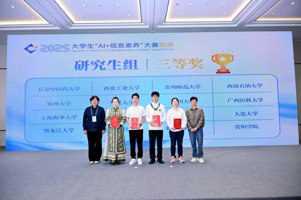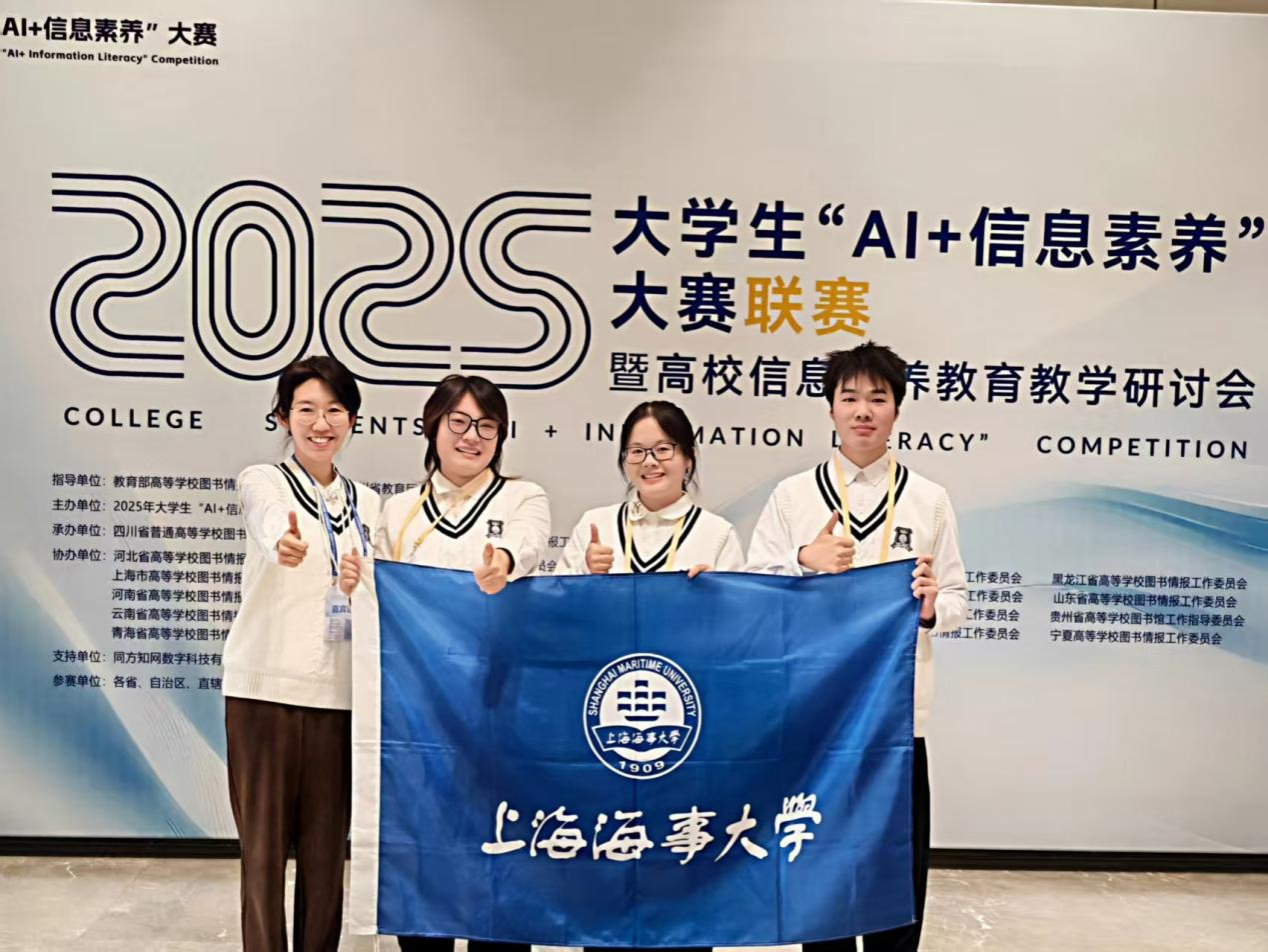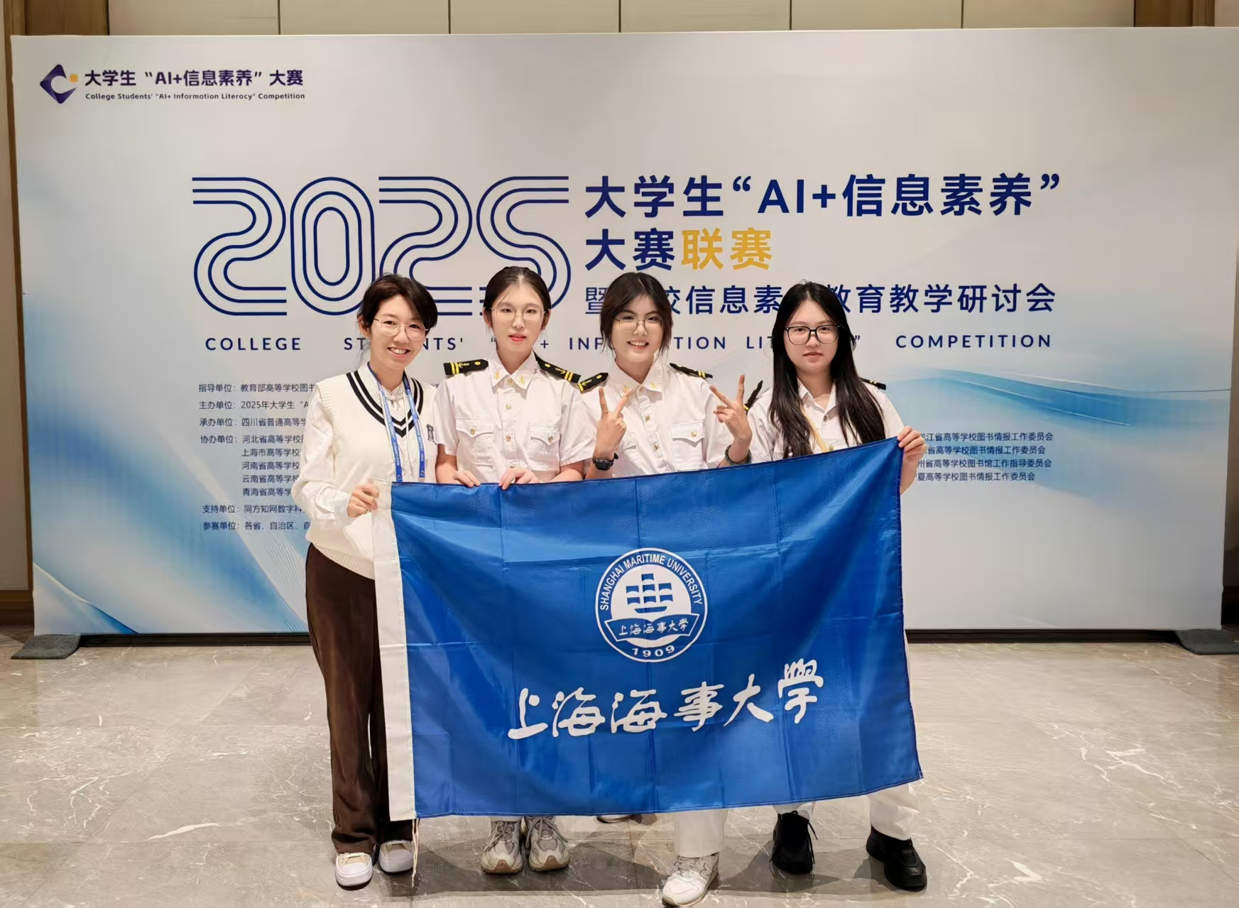 近日,2025年大学生“AI+信息素养”大赛联赛在成都圆满落幕。经过与全国高校顶尖队伍的激烈角逐,上海海事大学本科生组“致富路上永不掉队”(连清晟、韩亦禛、吕彤)与研究生组“蒙的都队”(董欣欣、杨睿、刘浩)2支队伍凭借扎实的信息检索功底、高效的AI技术应用能力和稳定的临场发挥,最终分获各自组别全国联赛三等奖,指导教师吕长红同步获评本科生组与研究生组优秀指导教师奖。