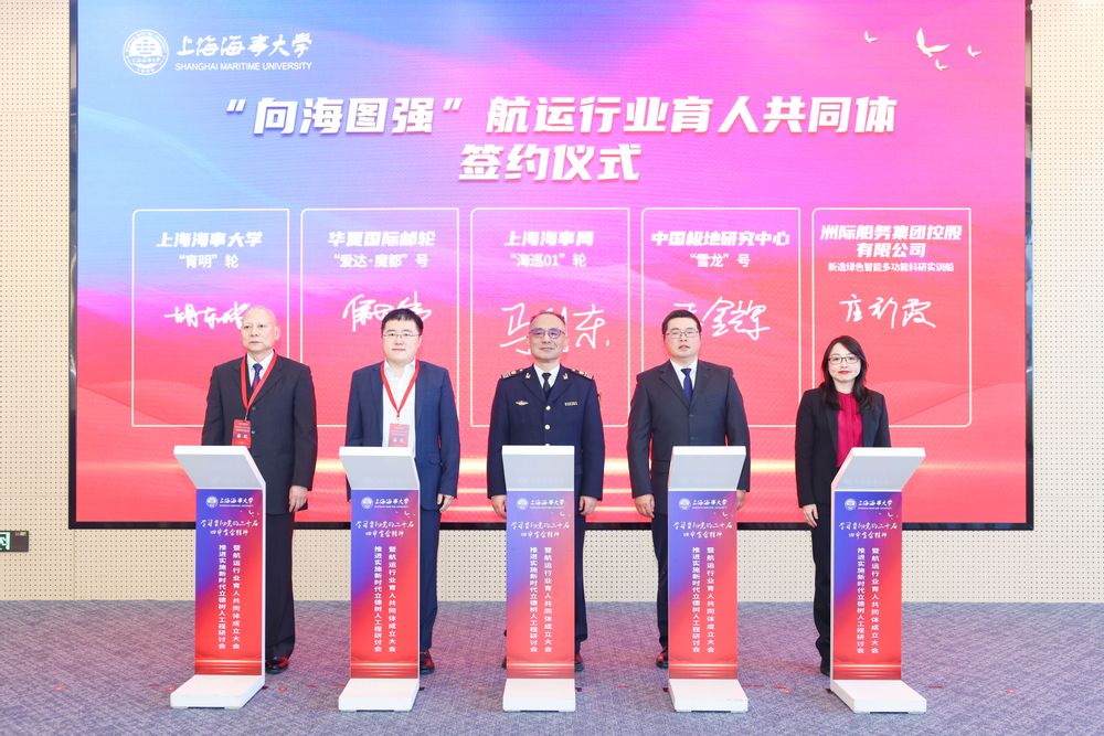 与会嘉宾共同为“向海图强”航运行业育人共同体揭牌,标志着以上海为核心枢纽的航运行业协同育人进入新阶段。
