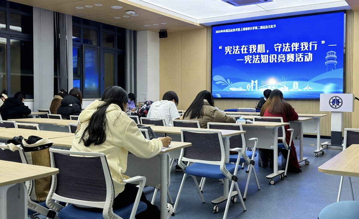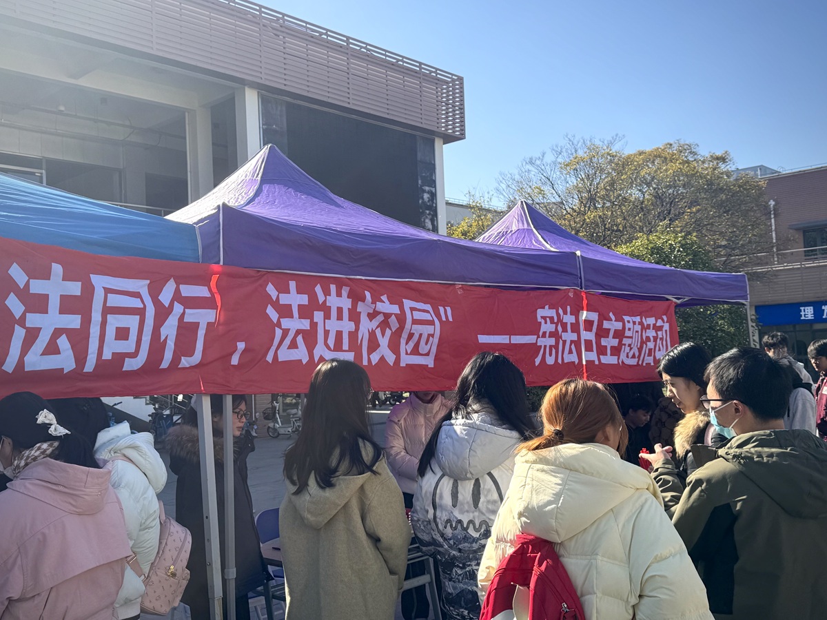 2025年12月4日是我国第十二个国家宪法日。为进一步弘扬宪法精神、营造校园法治氛围,学校依托2025滴水湖宣传月暨上海海事大学第二届法治文化节组织开展了以“弘扬宪法精神,建设法治文化”为主题的国家宪法日系列活动。作为法治文化节的重要组成部分,本次活动以互动宣传与知识竞赛等形式,吸引全校师生积极参与,切实推动宪法精神融入校园生活。