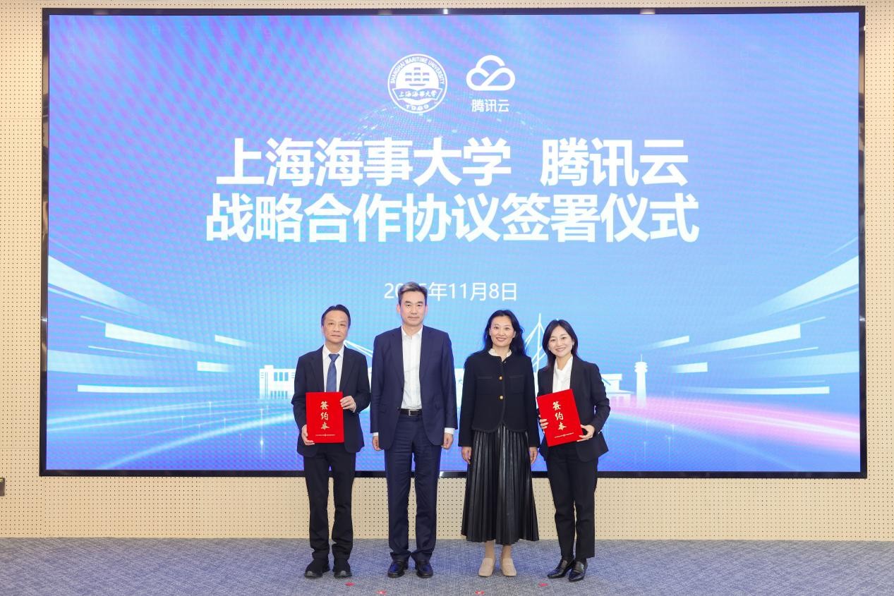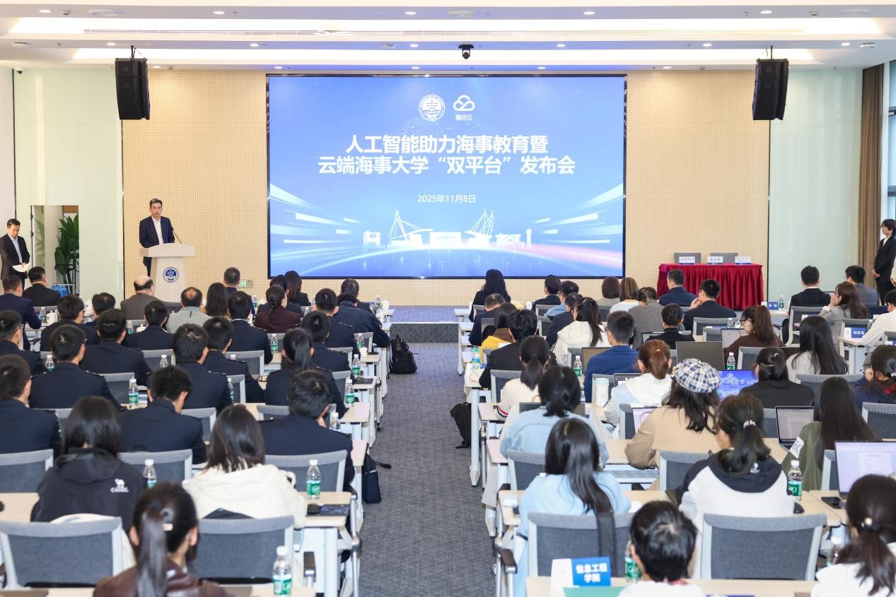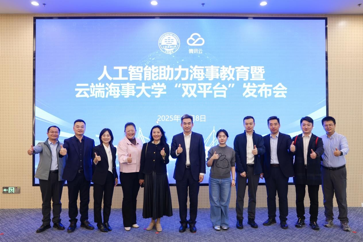 11月8日,上海海事大学与腾讯云联合主办的“人工智能助力海事教育暨云端海事大学‘双平台’发布会”在该校举行。校长初北平、副校长严伟,腾讯云副总裁兼腾讯教育负责人石梅等嘉宾莅临现场,150余名师生代表共同见证这一海事教育数字化转型的重要时刻。