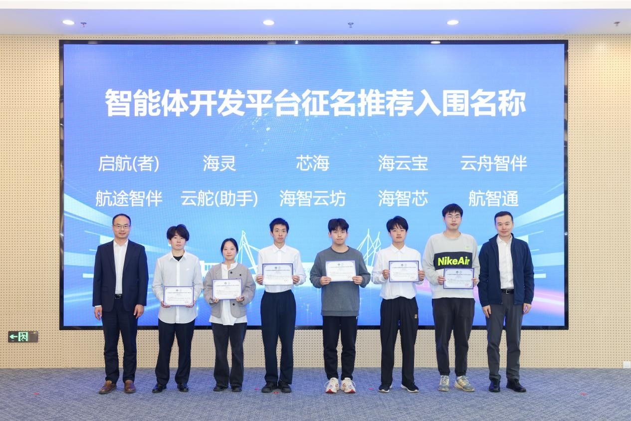 同时举行的云端海事大学“双平台”征名活动颁奖仪式上,20个入围优秀名称的创作者获颁荣誉证书。该活动此前共收到200余份投稿,充分彰显了师生校友对学校数字化建设的热情支持。“我给‘智能体平台’取名‘航途智伴’,既契合海事特色,也期待它成为学子的学习助力。”就读信息工程学院电子信息工程专业的大二学生朱振邦分享道了他参与征名的初衷。