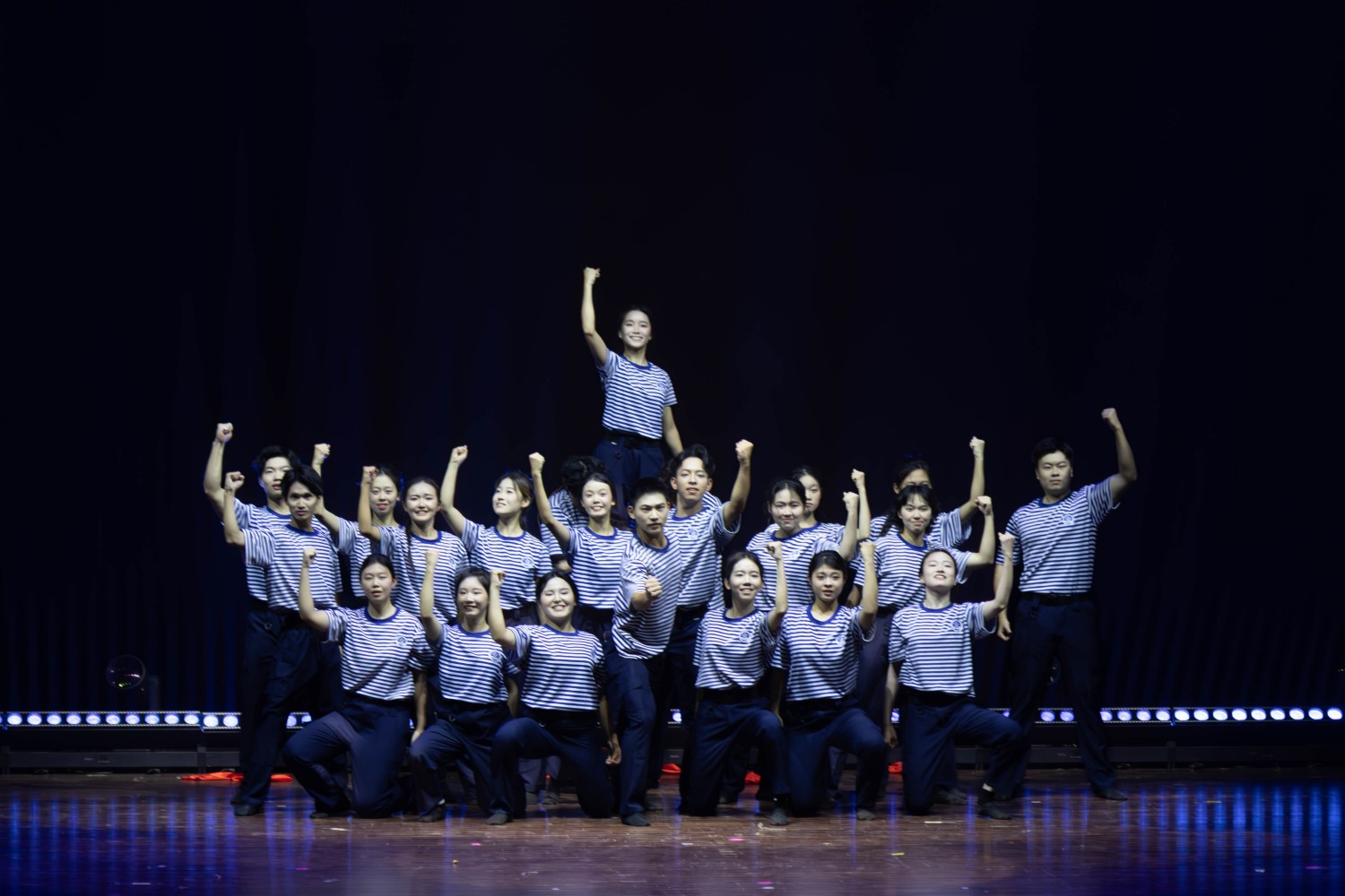商船学院的作品《溯航》最终以96.8分斩获一等奖。这部10分钟的舞剧以“心向蔚蓝”为主线,串联起从1909年船政科设立到“育明”轮远航的时代画卷。开篇,陈嘉震老校长与学子推演航线,复现代代海事人的筑基岁月;中段以音乐剧形式,老校长唱响与航运的不解之缘,舞者从少数增至多数,象征海事人的汇聚传承;结尾全体舞者齐声追问“何处是远方?”,新一代海事人“心向蔚蓝,无畏征途”的回答掷地有声。当饰演当代船员的演员们在“育明”轮笛声中齐声说出“报告船长,全船备航完毕”时,台下商船学院的师生自发跟喊“准备启航”。这种台上台下的默契,让《溯航》的结尾超越了表演,成为一场集体宣誓。