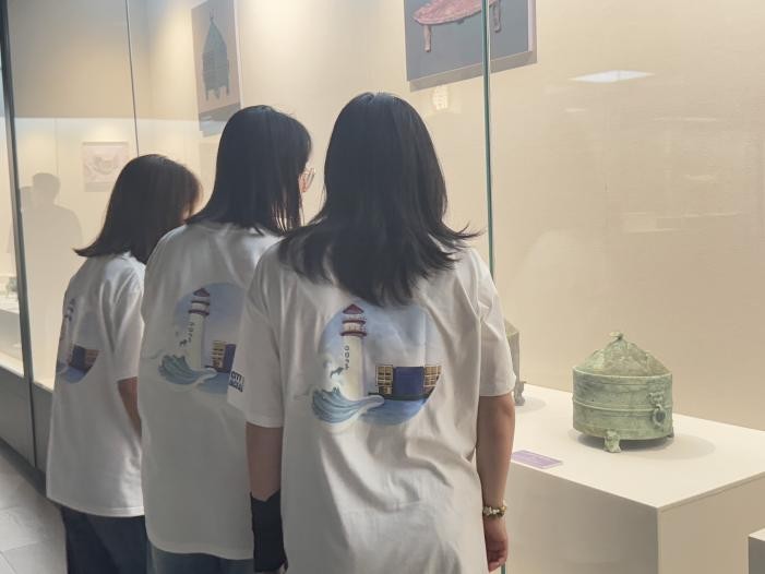 胡人俑陶座灯前,2024级计算机金融专业的梁苡榕正拿着在《汉书・地理志》中收集的资料进行对照观察。“‘蛮夷贾船,转送致之’这句话,今天终于有了实物佐证。你看陶座灯上的胡人面容,深目高鼻,和中原器物的审美风格完全不同,正是当时域外商人经合浦港进入中国的直接印证。”2024级工业设计专业的戴嘉伶也坦言:“这些文物是最生动的国际航运案例,比课堂上的贸易理论更具象——原来两千年前,合浦就已经是全球供应链的重要节点。”