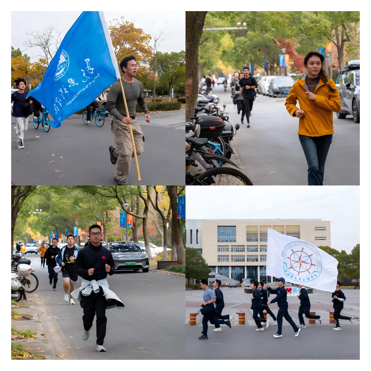 校党委副书记曹荣瑞宣布活动正式开始,与会嘉宾共同为健身跑鸣笛发令。随后,参赛师生精神抖擞地沿吴淞大道向吴淞商船纪念碑进发,全程约4公里,在奔跑与健行中展现出昂扬向上的精神风貌。