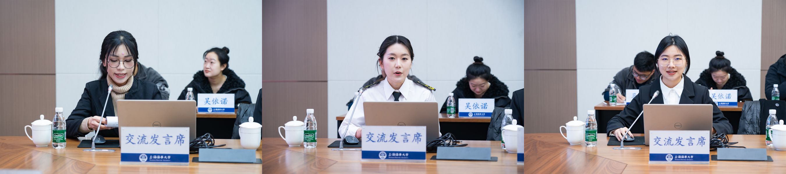 在交流发言环节,马克思主义学院“习近平新时代中国特色社会主义思想学生宣讲团”唐瑞同学、外国语学院“海之星理论宣讲团”王月阳同学、经济管理学院“海韵・红帆青年政治理论宣讲团”罗棠萱同学分别从学习体会、宣讲前期工作、下一步宣讲思路与举措三个方面开展交流研讨。