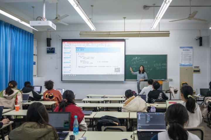 “我们的目标不是培养专业AI工程师,而是让各领域学生掌握AI基础素养。”丁琳的话点明了课程的核心定位。课堂教学摒弃传统专业课“重理论、深难度”的模式,将Python编程等核心内容定位为“入门引导”,通过化繁为简的知识拆解与高频次实操训练,帮助文科、理工科学生同频共进。课程考核采用“课堂互动+实操编程+期末测评+项目实践”的多元评价体系,兼顾知识掌握与能力落地,确保教学质量稳步提升。