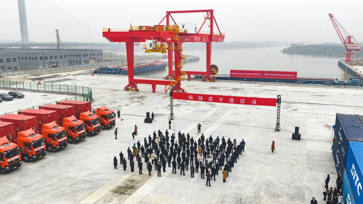 泰州市委书记姜冬冬、副市长周小慧,海陵区委书记刘剑波、区长夏爱东等政企领导班子成员,上港集团副总裁柳长满、达飞轮船(中国)首席运营官顾浩宇,上海新海丰集装箱运输有限公司总经理王国栋、上海中谷物流股份有限公司副总经理卢长迪、海陵区委办、政府办、发改委等相关职能部门以及海发集团、海融集团等相关负责人齐聚现场见证这一重要时刻。