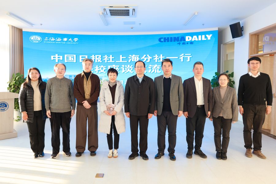 曹荣瑞对中国日报社长期以来对学校的关注与支持致以衷心感谢。他表示,中国日报社是学校开展涉海国际传播、不断提升国际化水平的重要合作伙伴,过往合作提升了学校的国际影响力,让海大故事更好走向世界。他指出,双方有着天然的合作基因,希望以此次交流为契机,拓宽合作领域、创新合作模式,在打造优质英文网站、宣传国际交流合作典型案例、开展国际传播培训、联合策划开展涉海重大活动、协同推进重要新闻报道、搭建学生实习实践平台和开展党建联建活动等方面深化合作,为进一步讲好上海国际航运中心故事,更好服务教育强国、航运强国、海洋强国贡献力量。