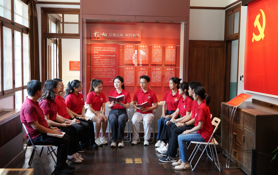 复旦大学学生讲解员在集体备课。