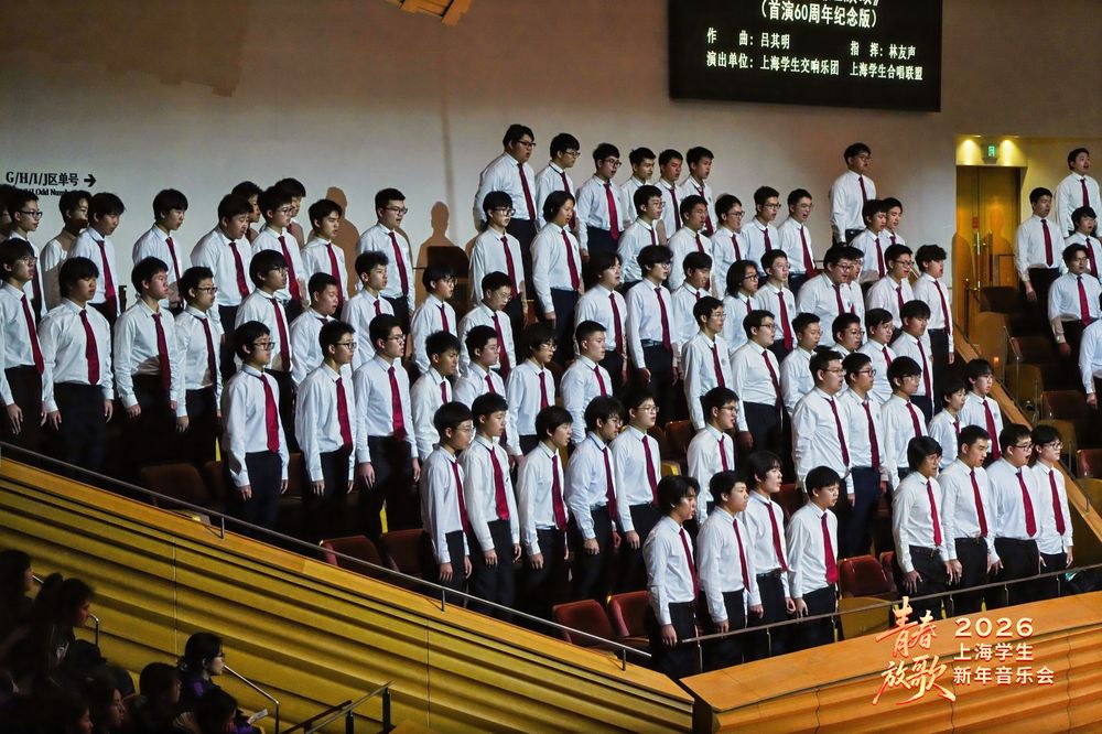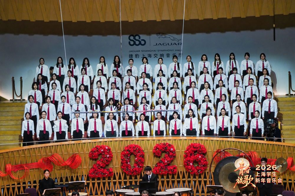 1月26日晚,由上海市教育委员会指导,上海学生合唱联盟主办,同济大学艺术中心承办的“青春放歌”2026年上海学生新年音乐会,在捷豹・上海交响乐团音乐厅举行。学校学生合唱团作为上海市学生合唱联盟单位受邀参演,凭借《势不可挡》《红旗颂》两首曲目精彩亮相,用歌声抒发青春之志,礼赞家国情怀。